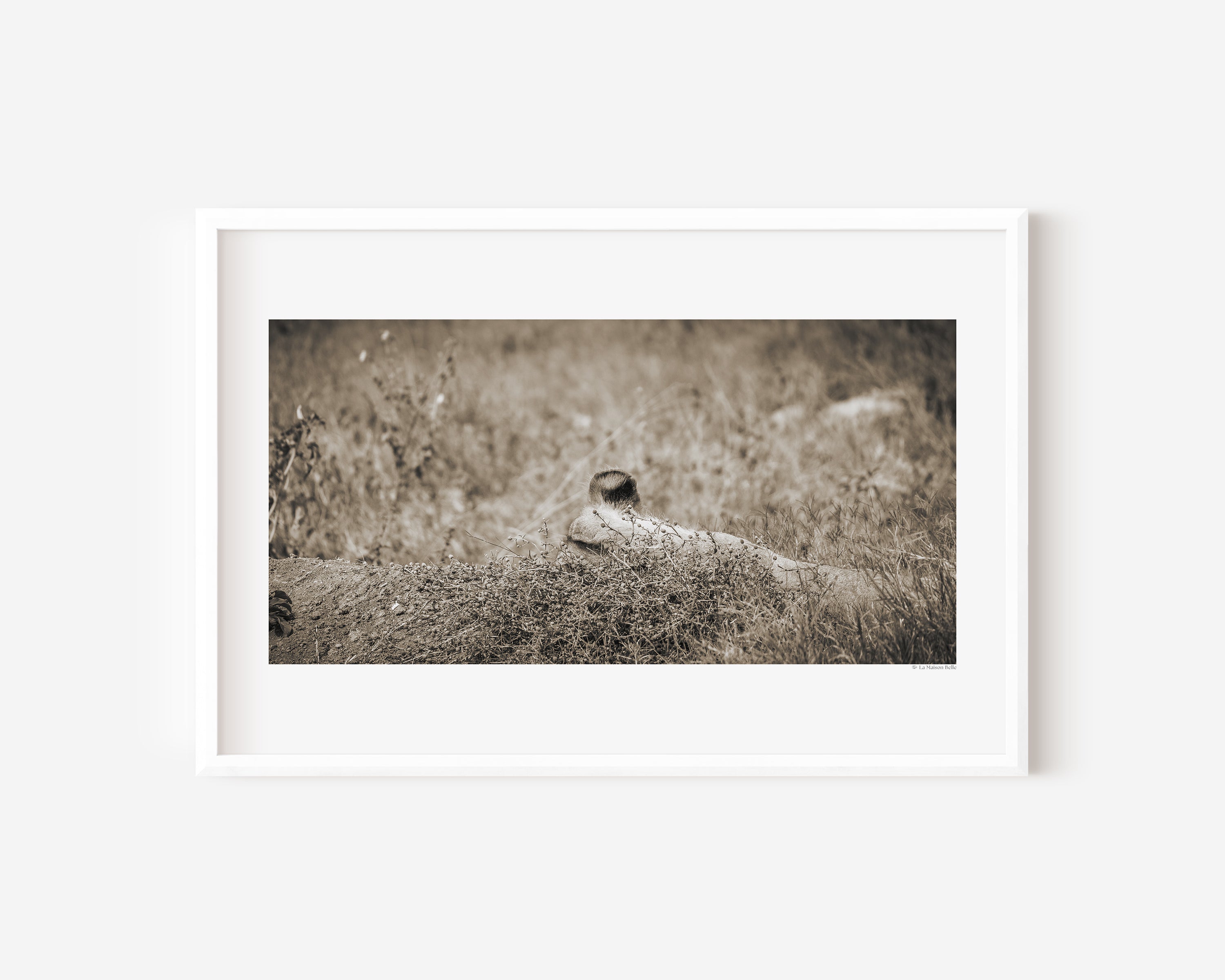 She doesn’t need to be seen to be known. In Hush, a lioness rests just beneath the grasses — only an ear visible, quietly tuned to the world around her.